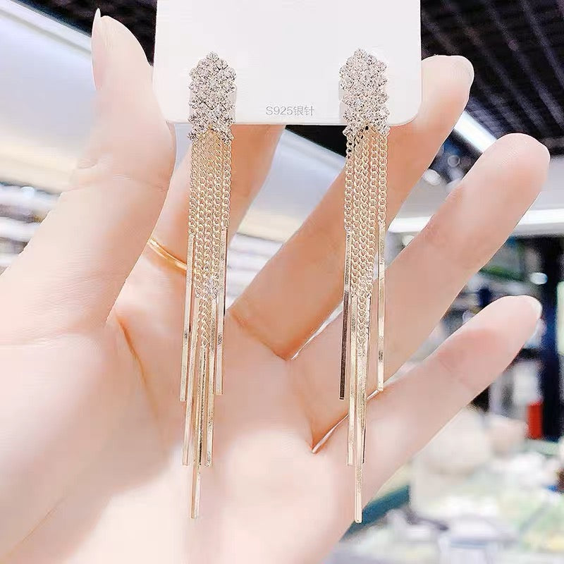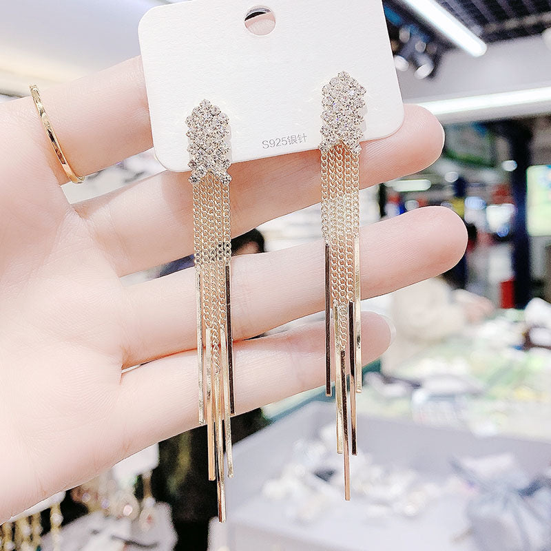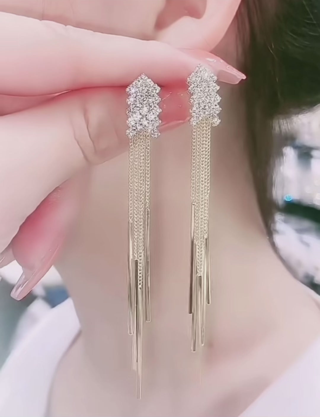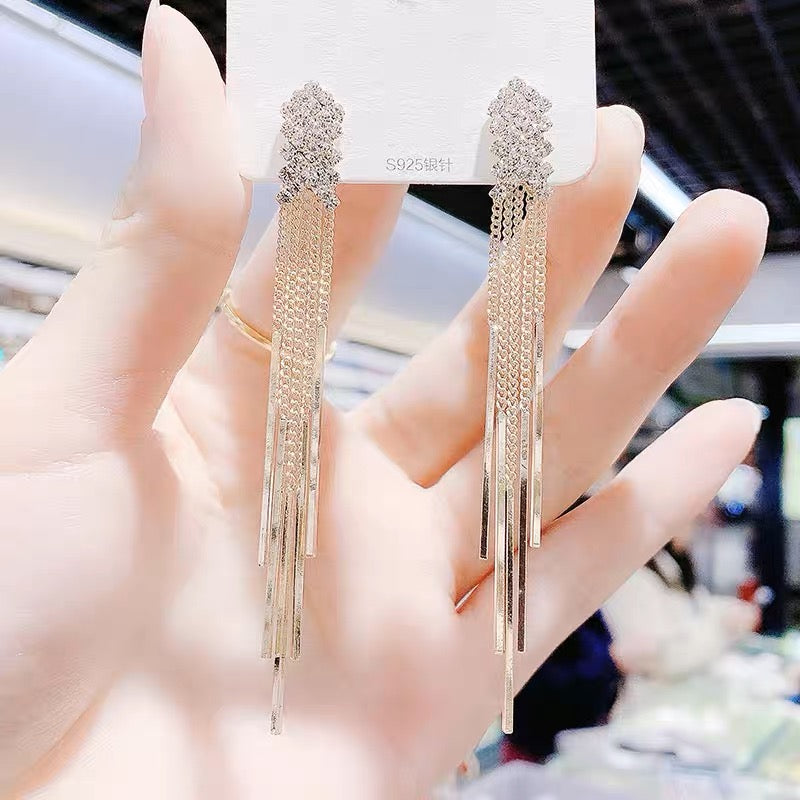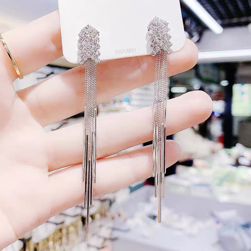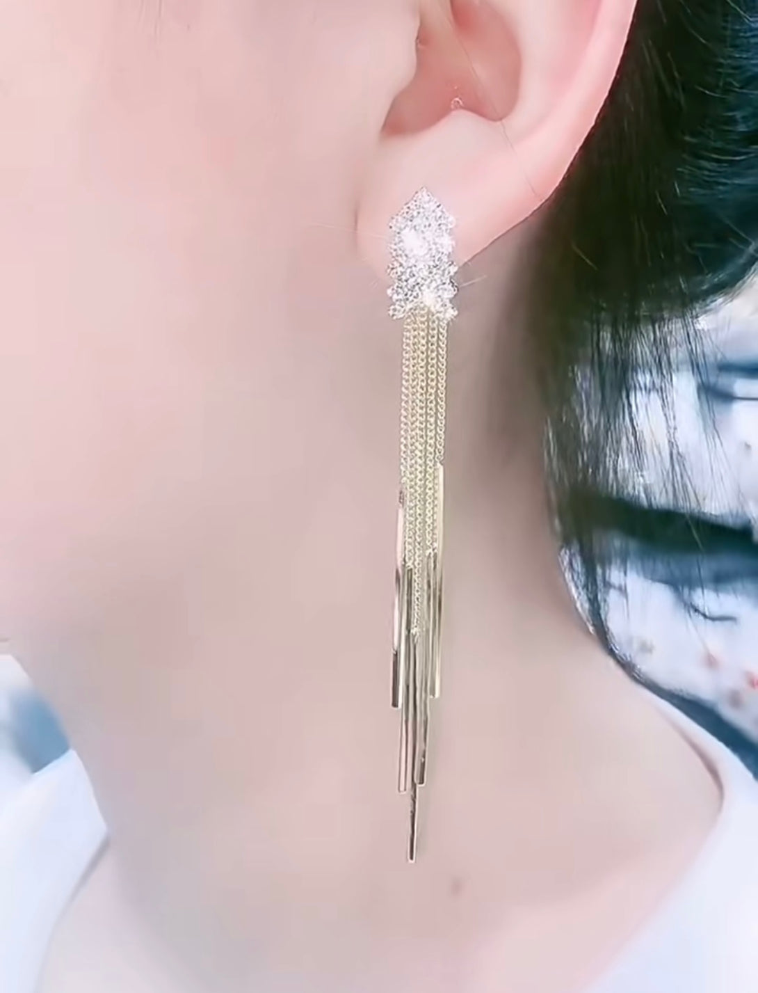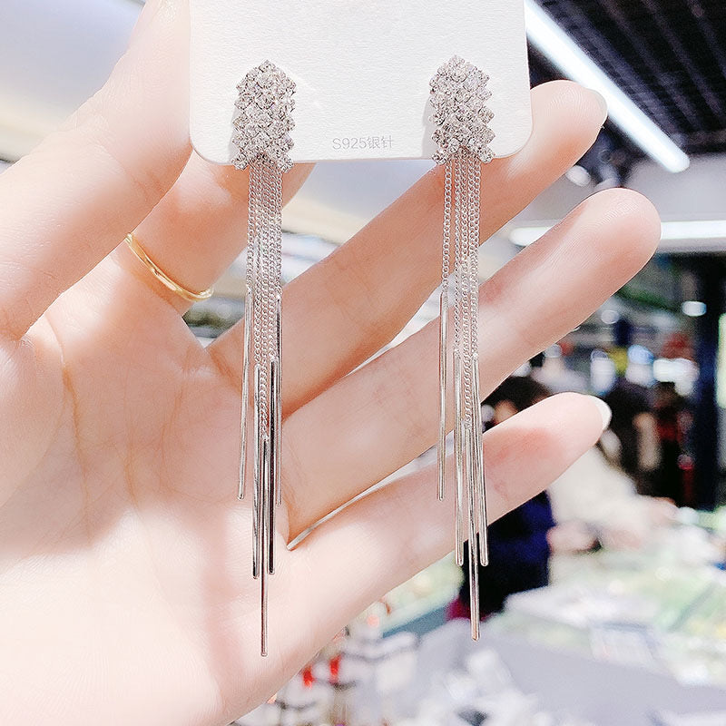 Designer Handmade Sterling Silver Needle with Diamond Tassels Personalized Long Earrings